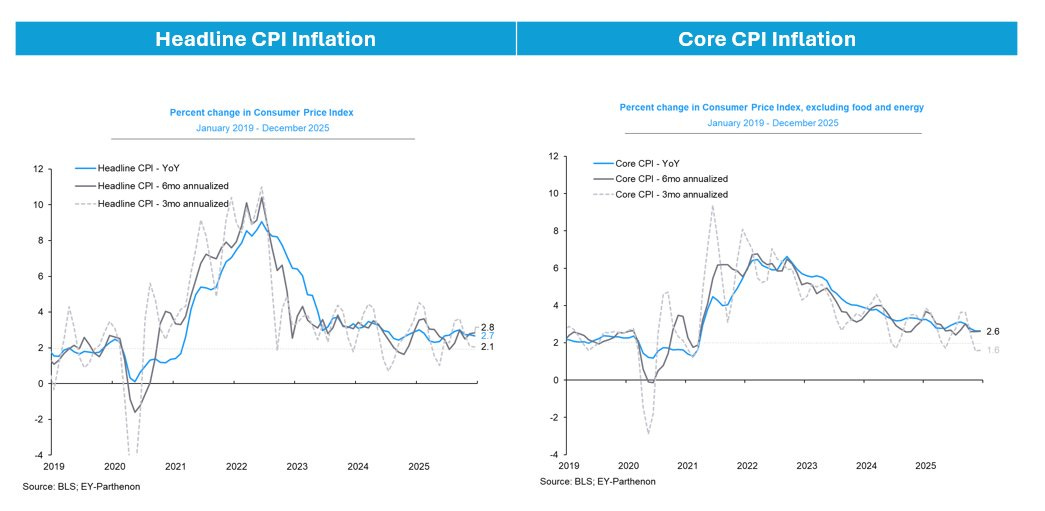 🎈Consumer price inflation appears to cool. The Consumer Price Index (CPI) in December was up 2.7% from a year ago. Adjusted for food and energy prices, core CPI was up 2.6%.