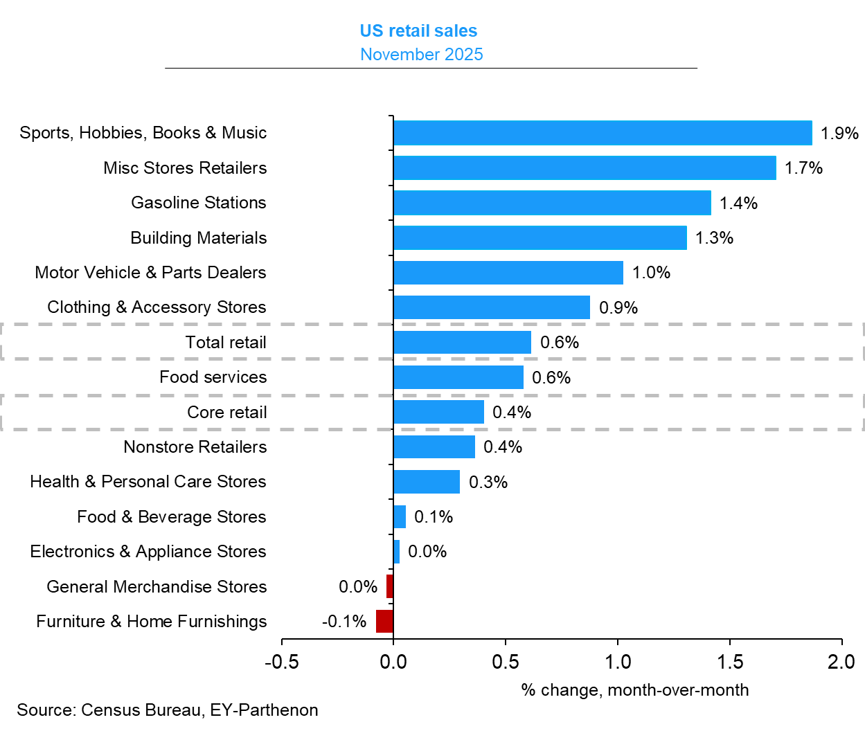 🛍️ Retail shopping grew. Retail sales grew 0.6% to a record $735.9 billion level in November. Core retail sales — which excludes automobiles, gasoline, building materials, and food services — climbed by 0.4%.