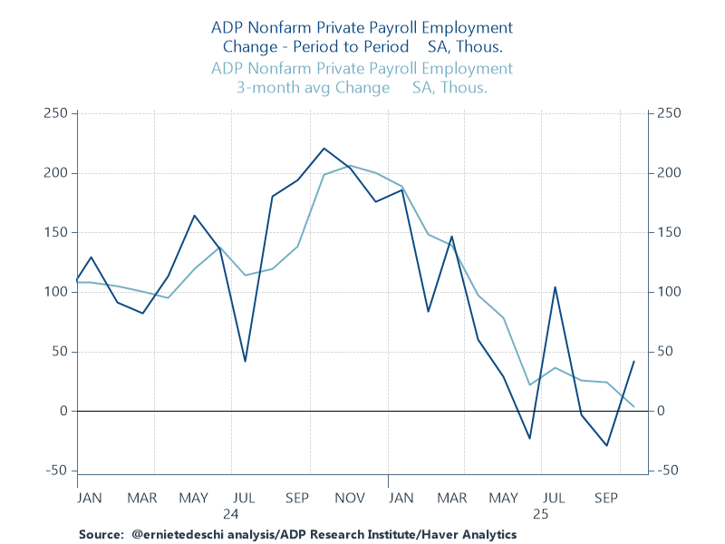 According to payroll processor ADP, private sector employers added just 42,000 jobs in October. While the number was positive, it also confirmed a months-long trend in declining job creation.