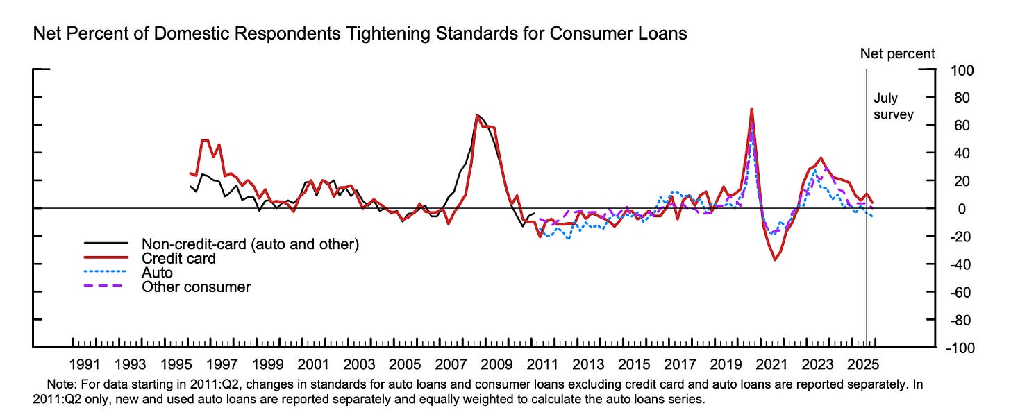 “For consumer loans, standards remained basically unchanged for credit card and other consumer loans and eased for auto loans.”