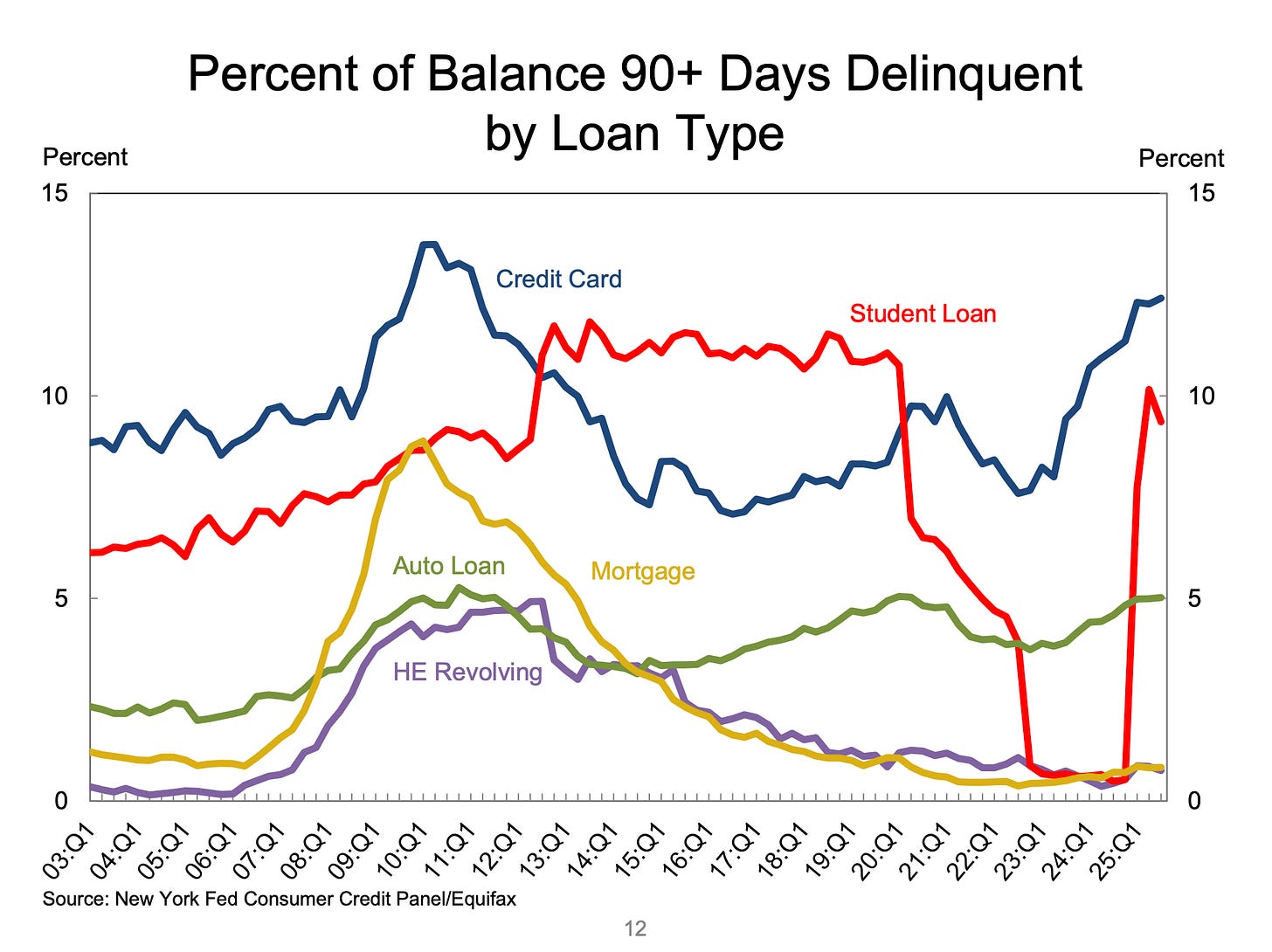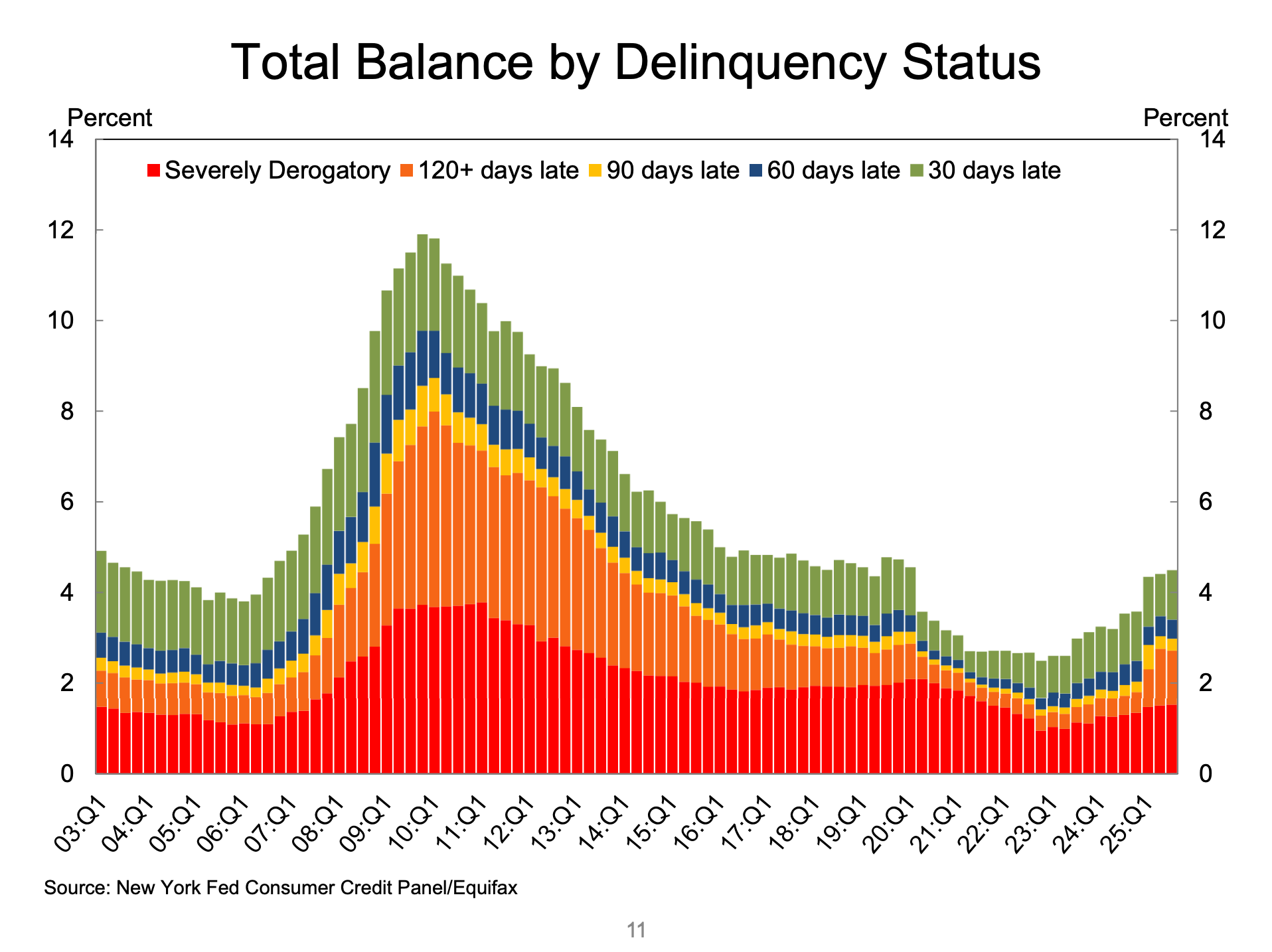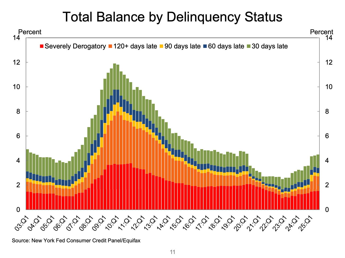 “Household debt balances are growing at a moderate pace, with delinquency rates stabilizing,” said NY Fed economist Donghoon Lee. “The relatively low mortgage delinquency rates reflect the housing market’s resilience, driven by ample home equity and tight underwriting standards.”