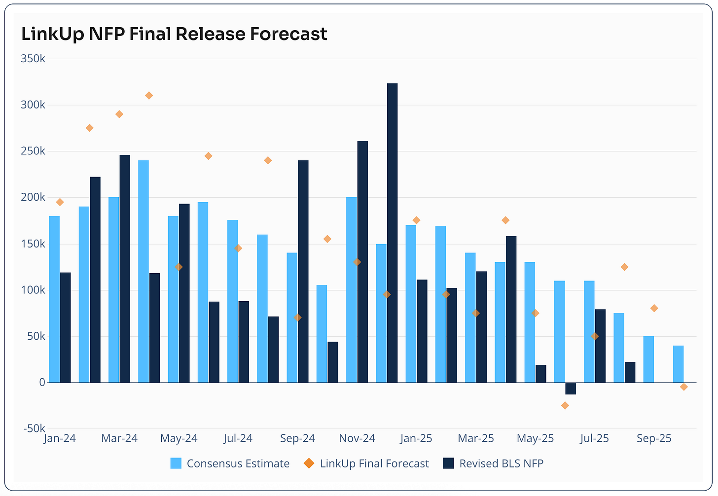 👆The labor market is cooling. Recent reports from ADP, LinkUp, Revelio Labs, and Challenger confirm as much. For more, see the charts and stats above.