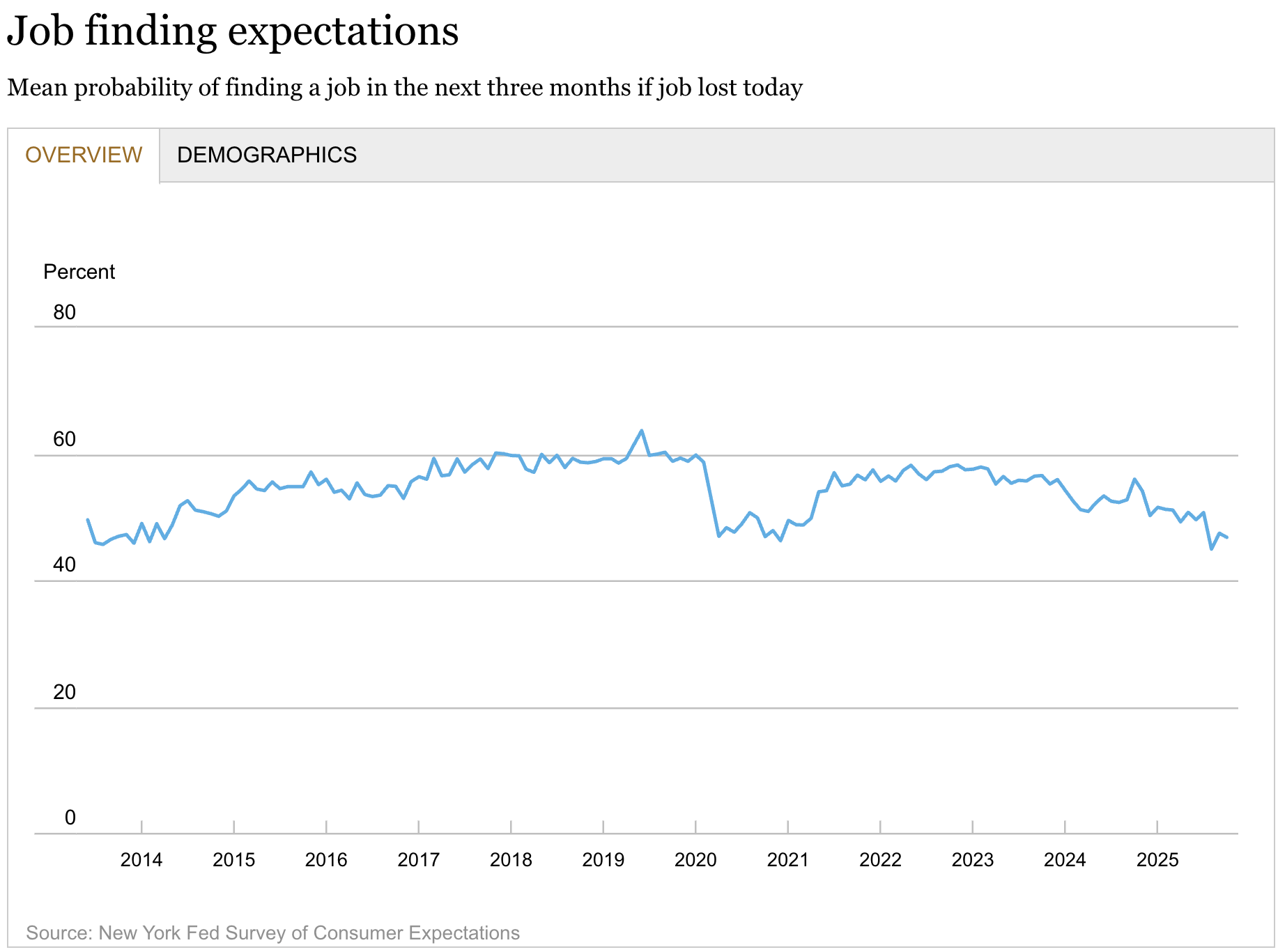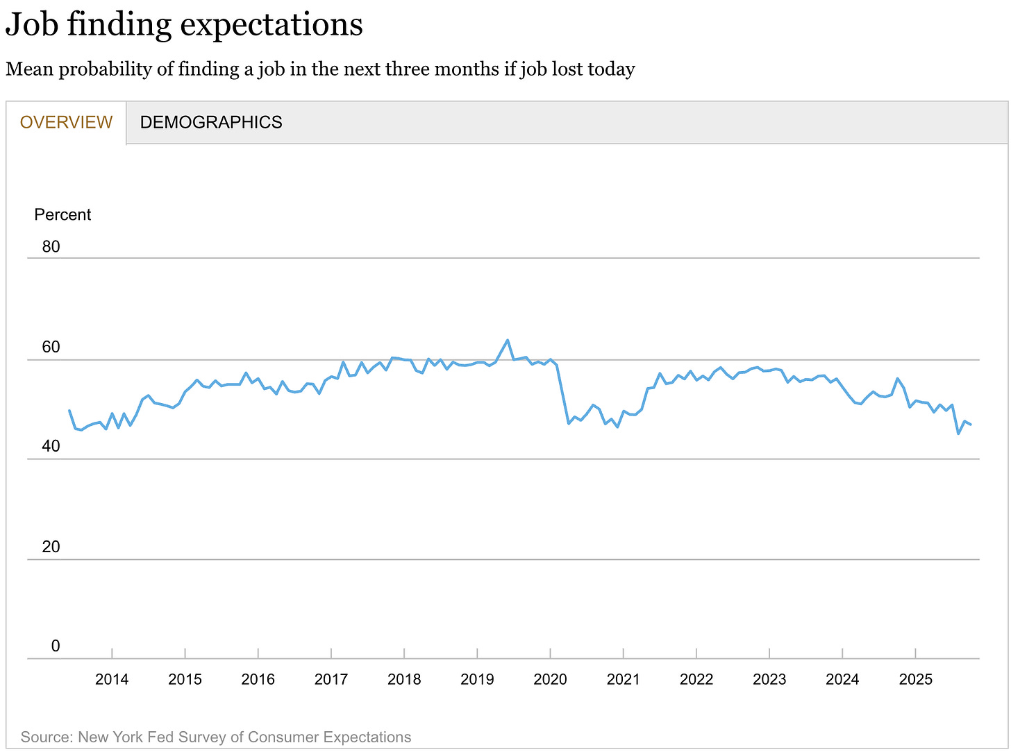 The New York Fed’s Survey of Consumer Expectations found that consumers are becoming less optimistic about finding a job if they were to lose theirs today.