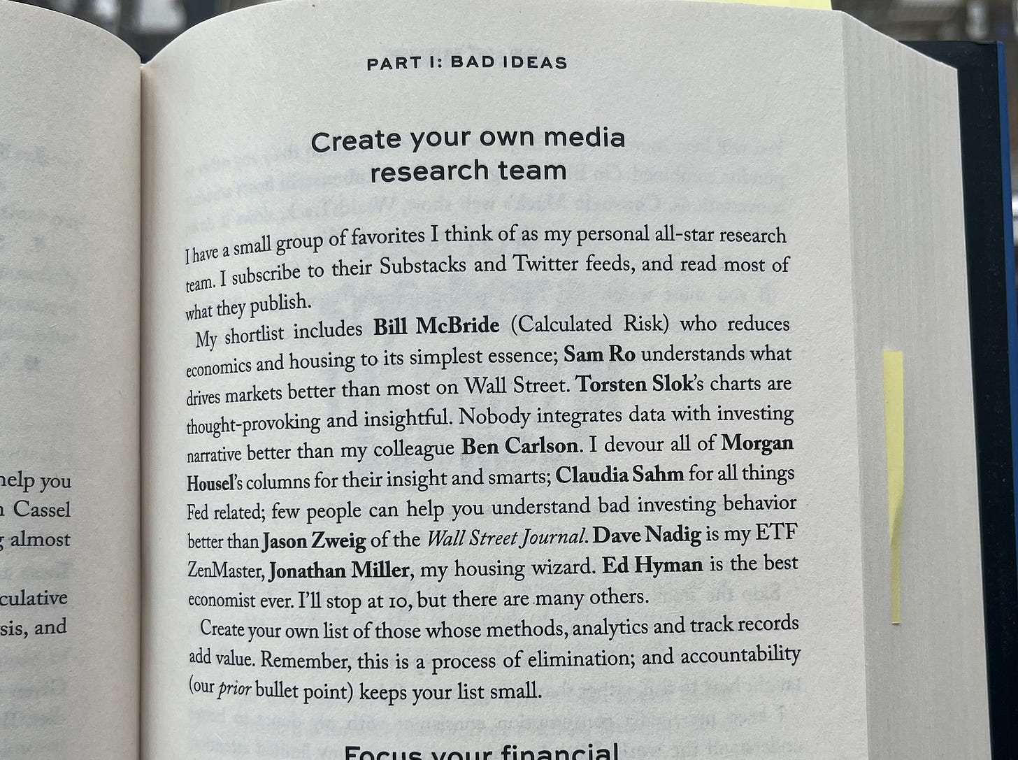 I was shocked and humbled to learn that Barry mentioned me in ā€œHow NOT To Invest.ā€ I’ve been reading his blogs since before the financial crisis. He’s had a huge impact on how I think and write about markets.