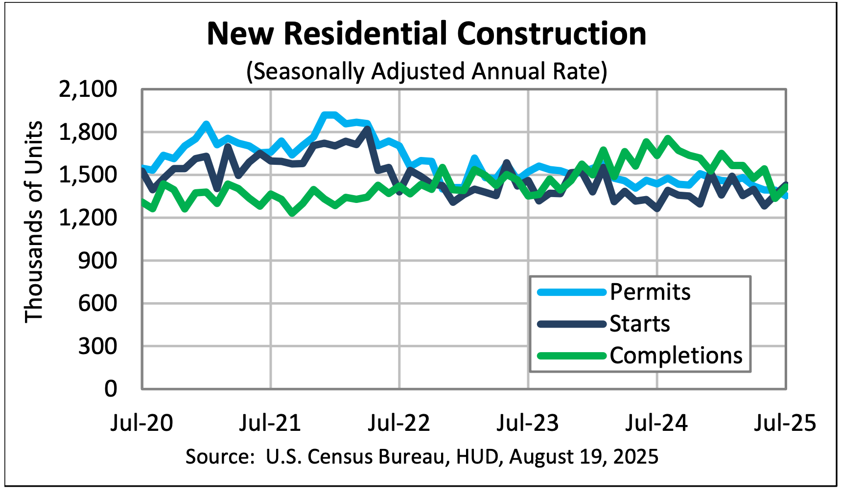 🔨 New home construction starts rise. Housing starts increased 5.2% in July to an annualized rate of 1.43 million units, according to the Census Bureau. Building permits ticked down 2.8% to an annualized rate of 1.35 million units.