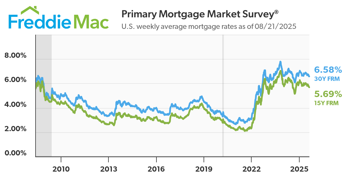 🏠 Mortgage rates hold steady. According to Freddie Mac, the average 30-year fixed-rate mortgage stood at 6.58%, unchanged from last week. From Freddie Mac: “The 30-year fixed-rate mortgage remained flat this week. Over the summer, rates have come down and purchase applications are outpacing 2024, though a number of homebuyers continue waiting on the sideline for rates to further decrease.”
