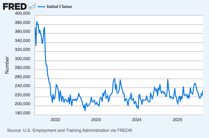💼 New unemployment claims and total ongoing claims rise. Initial claims for unemployment benefits rose to 235,000 during the week ending Aug. 16, up from 224,000 the week prior. This metric remains at levels historically associated with economic growth.