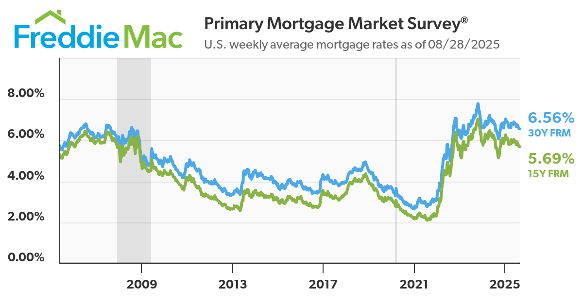 🏠 Mortgage rates tick lower. According to Freddie Mac, the average 30-year fixed-rate mortgage stood at 6.56%, down from 6.58% last week. From Freddie Mac: “Mortgage rates are at a 10-month low. Purchase demand continues to rise on the back of lower rates and solid economic growth. Though many potential homebuyers still face affordability challenges, consistently lower rates may provide them with the impetus to enter the market.”
