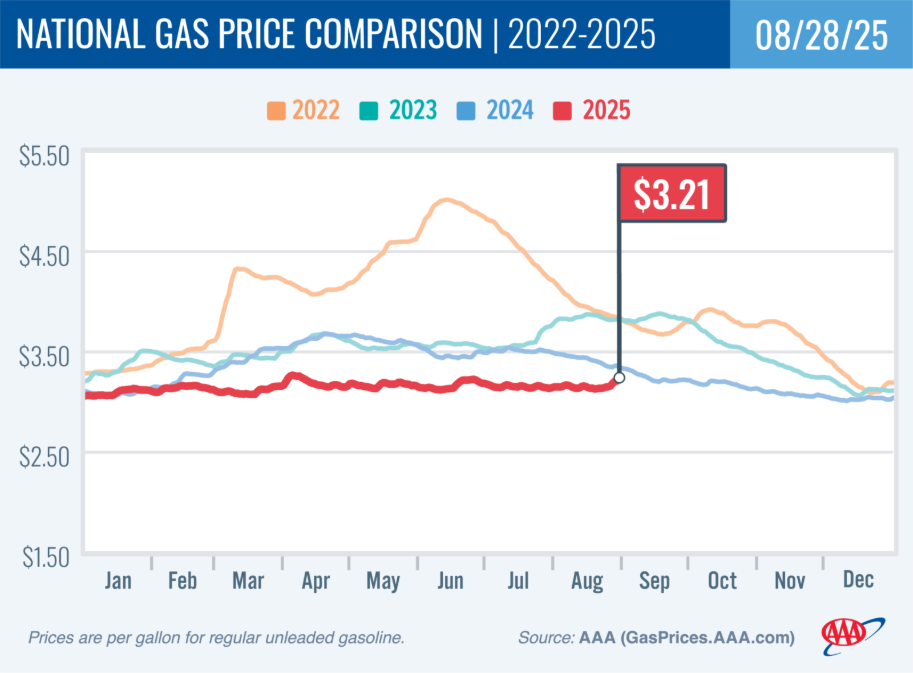 ⛽️ Gas prices tick higher. From AAA: “A recent refinery issue has caused a surge in gas prices ahead of Labor Day weekend. The national average for a gallon of regular went up more than 7 cents this past week to $3.21 mainly due to flooding at BP Whiting Refinery in Indiana. The largest refinery in the Midwest shut down operations for several days following a severe thunderstorm. As a result, states in the Great Lakes region saw an increase in gas prices, but they may get some relief soon now that the refinery is back online. Overall, summer gas prices have remained steady and should trend downward as the fall season begins. But the incident in Whiting underscores the futility of predicting gas prices. Mother Nature and geopolitical events can suddenly and unexpectedly impact fuel prices.”