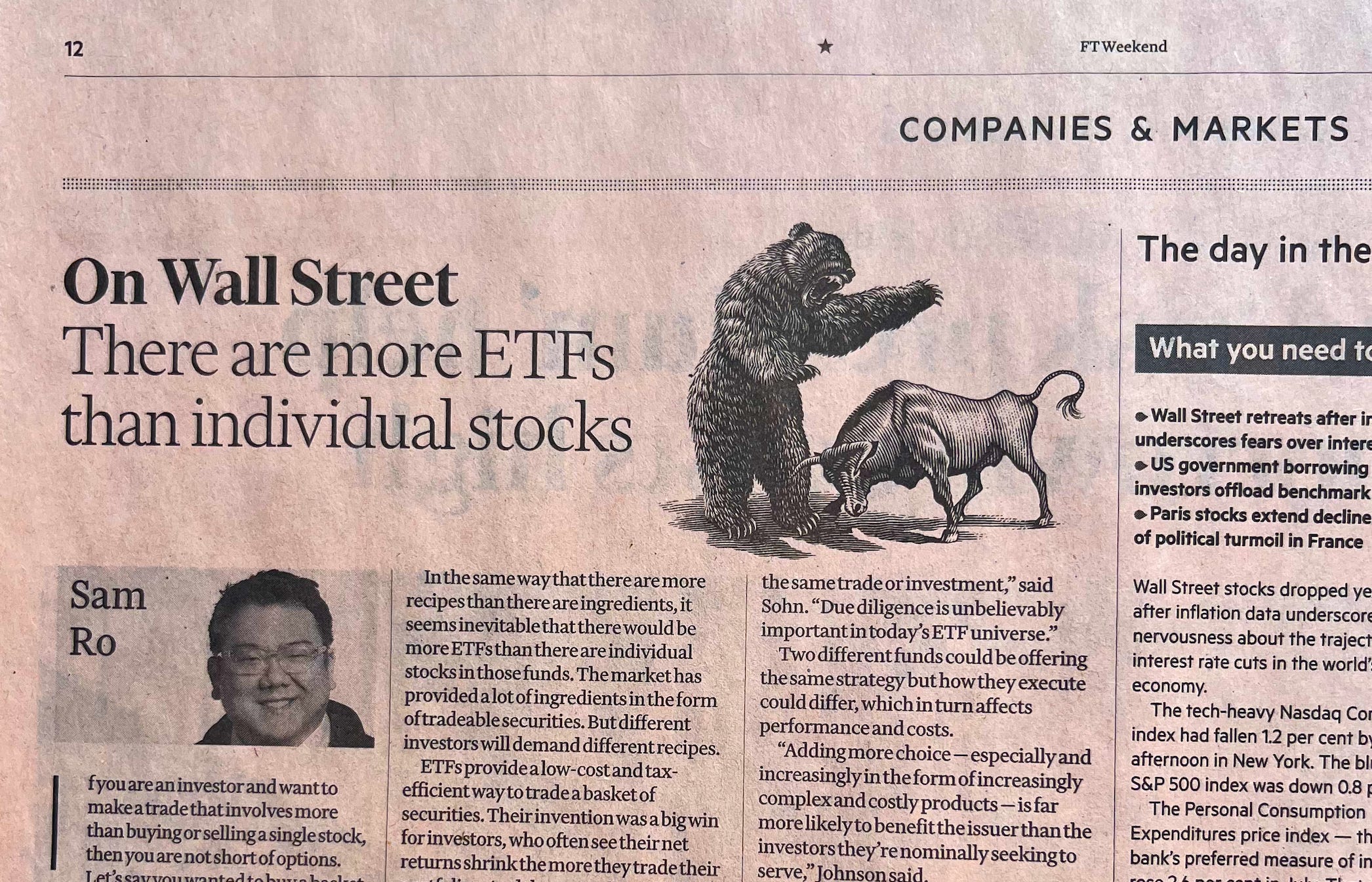 The Financial Times invited me to write a column on the ups and downs of the ETF boom, including the issue of choice overload and the tax event that occurs when a fund closes. Many thanks to Tony Tassell for editing. And thanks to Strategas’ Todd Sohn and Morningstar’s Ben Johnson for providing color. You can read it here »