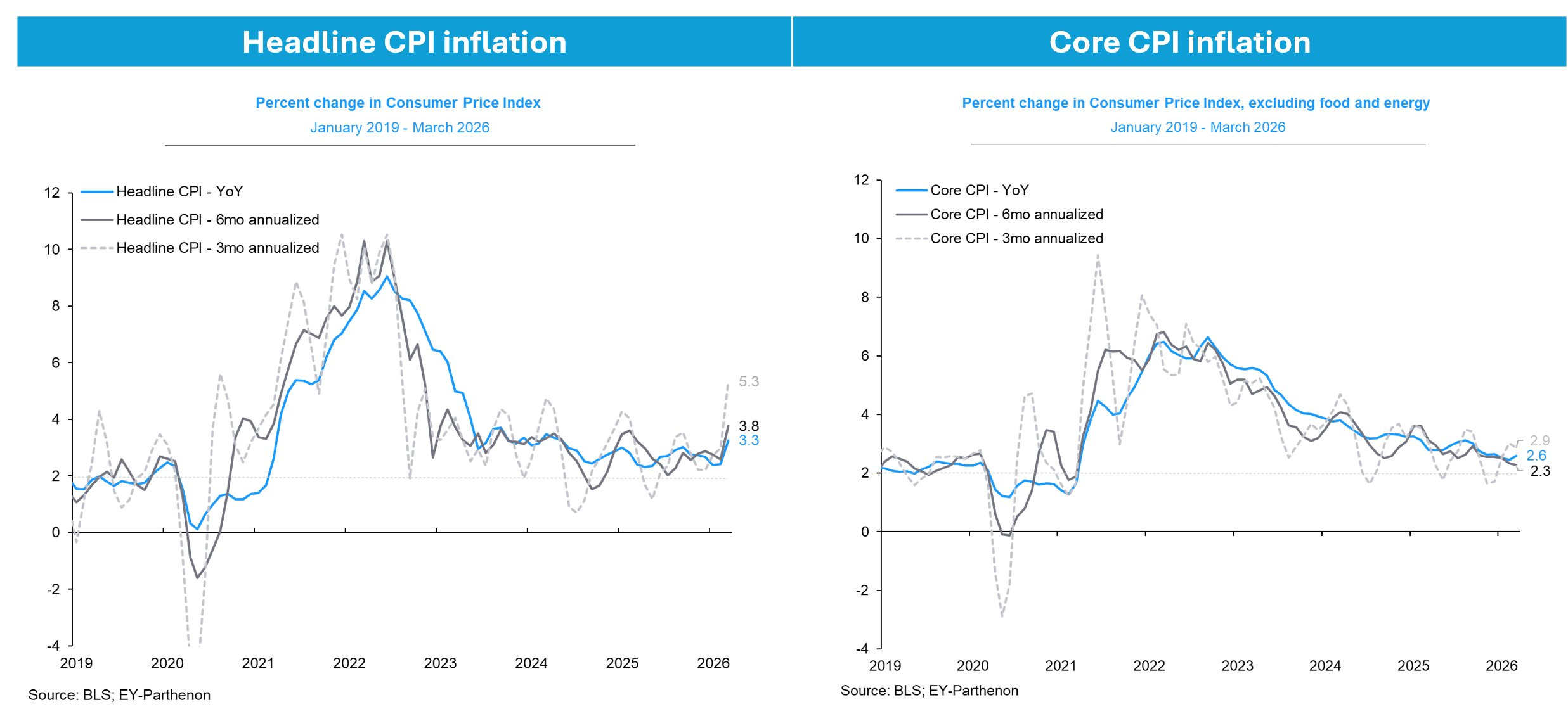 On a month-over-month basis, CPI jumped 0.9%, driven by a 10.9% surge in energy prices. Core CPI increased 0.2%. If you annualize the three-month and six-month figures — a reflection of the short-term trend in prices — core CPI climbed 2.9% and 2.3%, respectively.