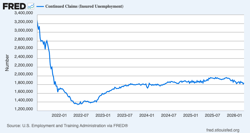 Insured unemployment, which captures those who continue to claim unemployment benefits, declined to 1.79 million during the week ending March 28.