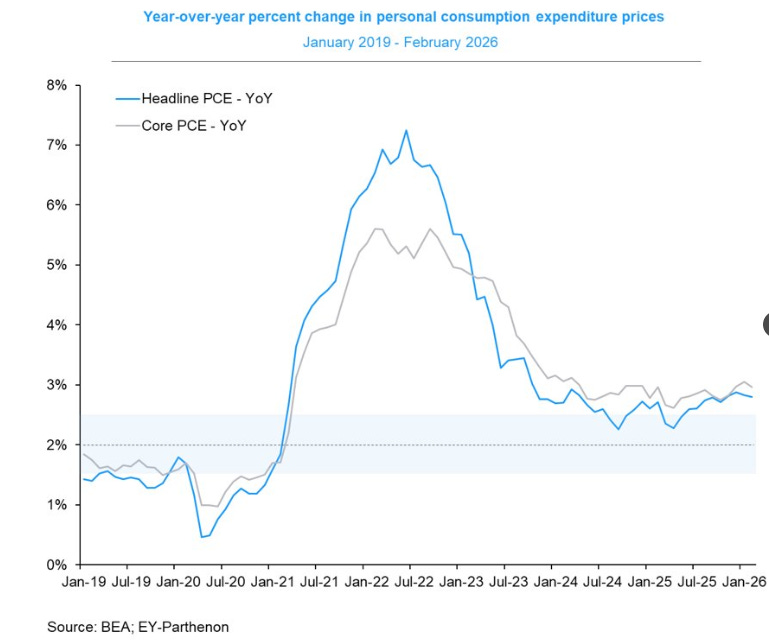 🎈 Key inflation metric could be cooler. The personal consumption expenditures (PCE) price index in February was up 2.8% from a year ago. The core PCE price index — the Federal Reserve’s preferred measure of inflation — was up 3.0% during the month, down from January’s 3.1% rate. While it’s down from crisis levels four years ago, it remains above the Fed’s 2% target.