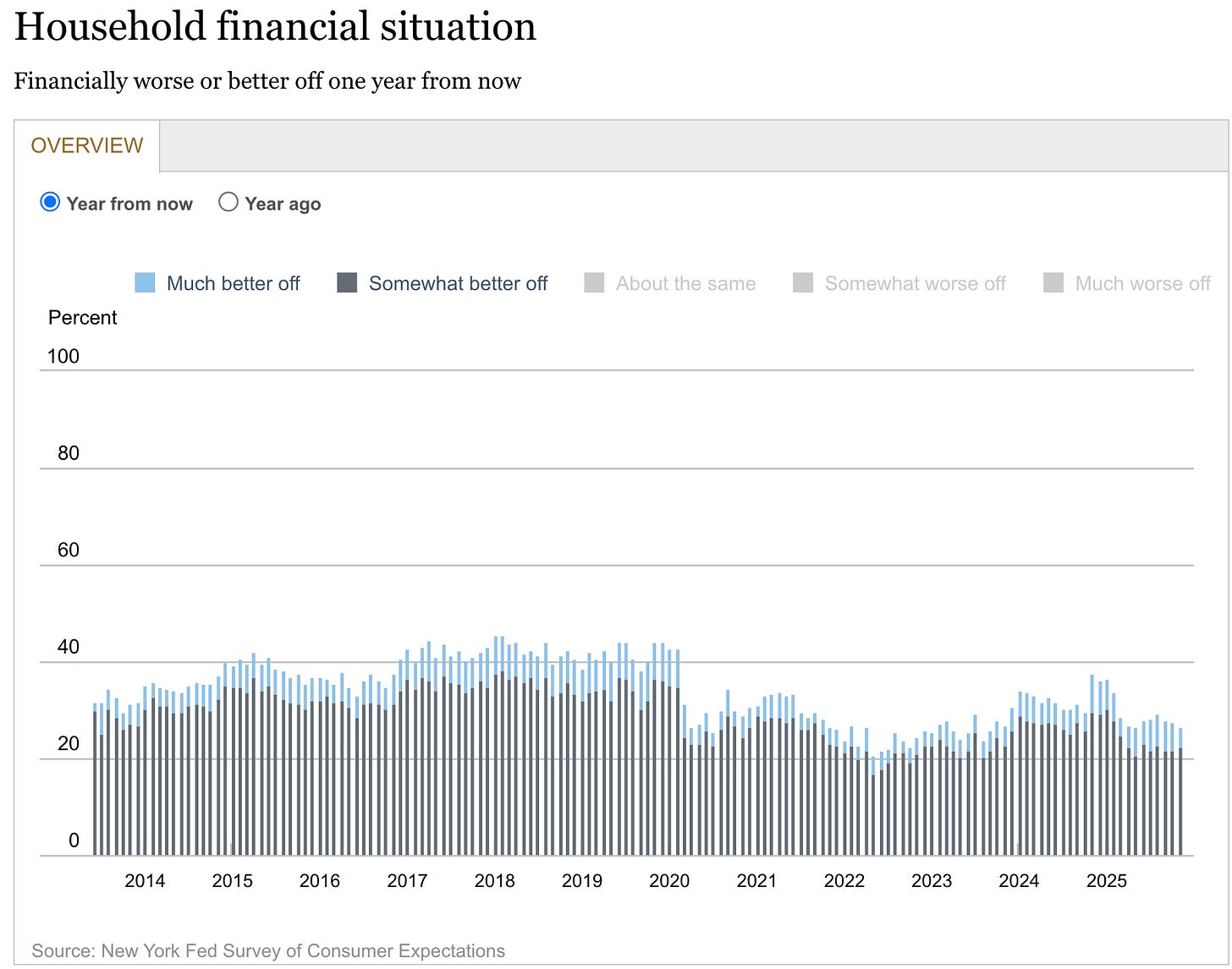 More: “Expectations about year-ahead financial situations also deteriorated slightly, with a smaller share of respondents reporting that their households are expecting to be better off a year from now.“