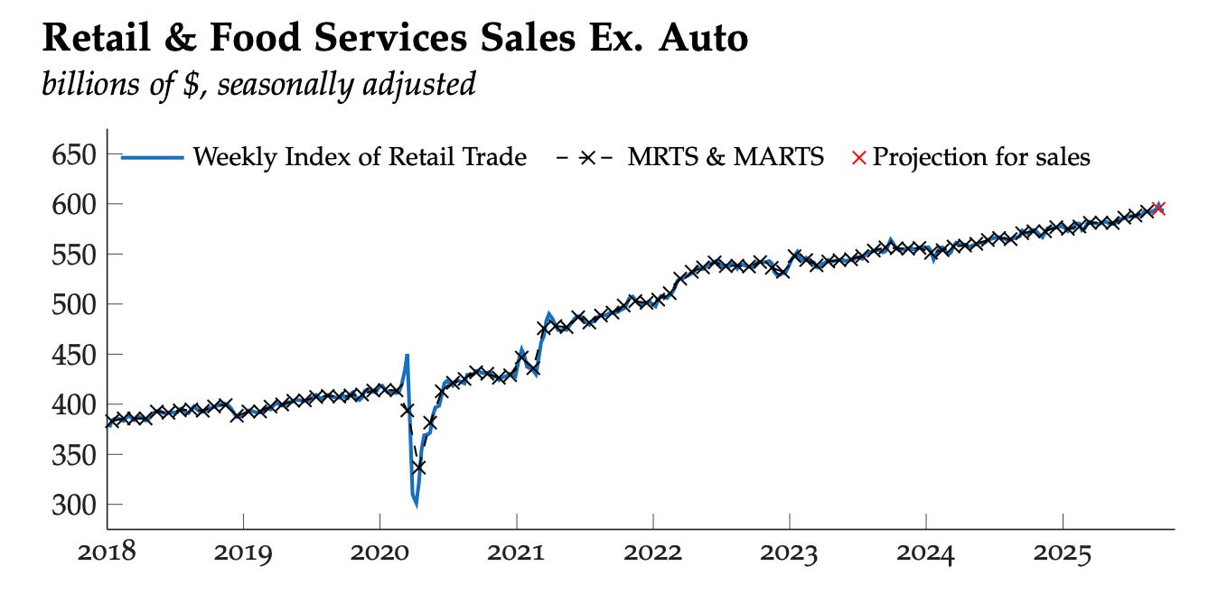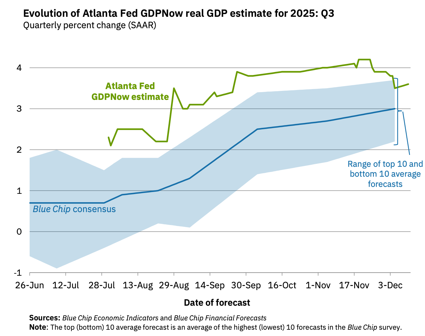 📈 Near-term GDP growth estimates are tracking positively. The Atlanta Fed’s GDPNow model sees real GDP growth rising at a 3.6% rate in Q3.