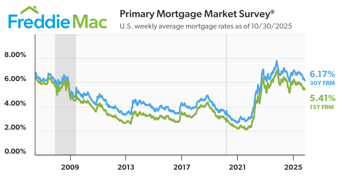 🏠 Mortgage rates tick lower. According to Freddie Mac, the average 30-year fixed-rate mortgage declined to 6.17%, down from 6.19% last week: “Mortgage rates decreased for the fourth consecutive week. The last few months have brought lower rates and homebuyers are increasingly entering the market.”