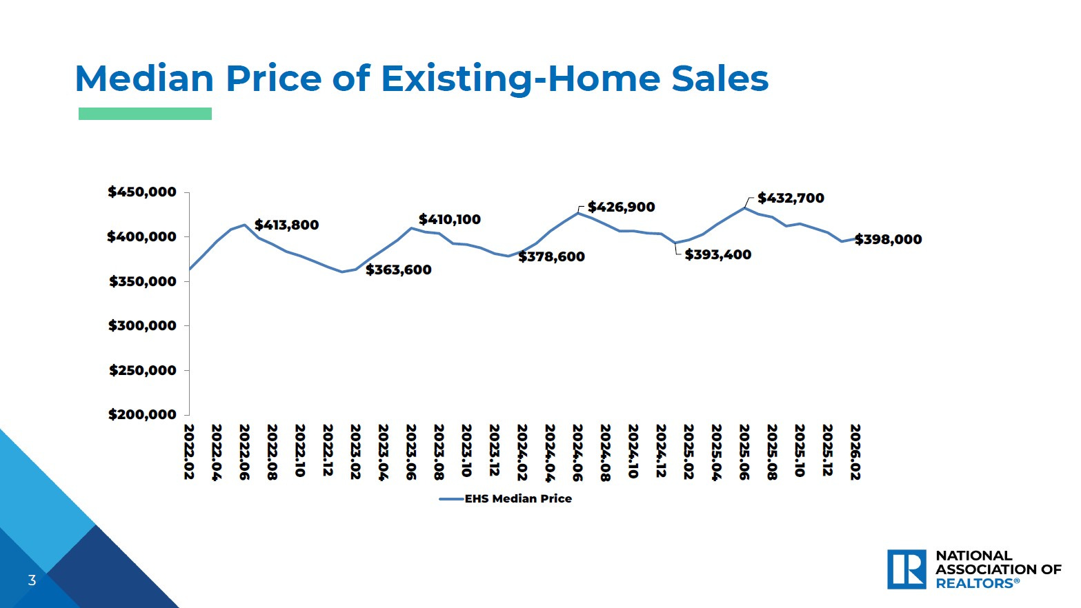 Prices for previously owned homes rose from last month and year-ago levels. From the NAR: “The median existing-home sales price for all housing types in February was $398,000, up 0.3% from one year ago ($396,800) – the 32nd consecutive month of year-over-year price increases.”