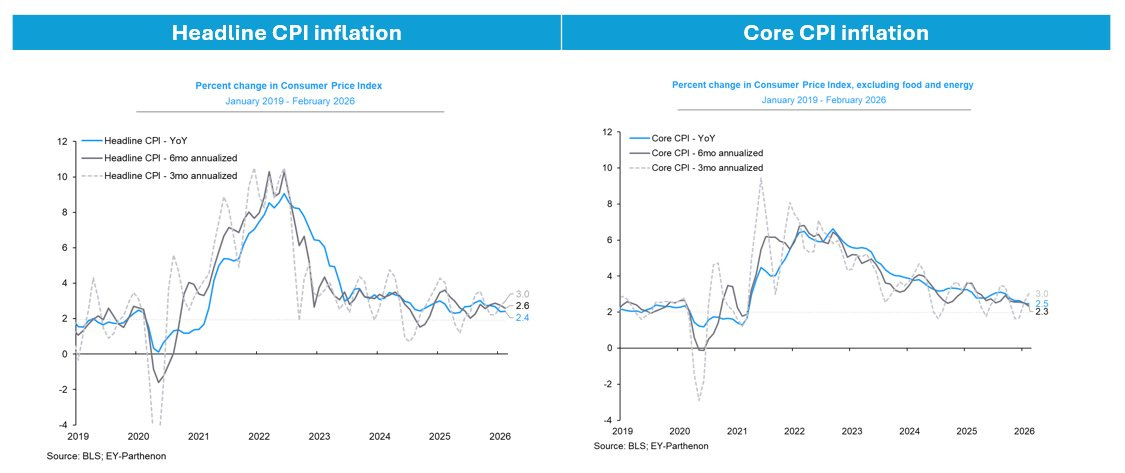🎈Consumer price inflation appears to cool. The Consumer Price Index (CPI) rose 2.4% year over year in February, unchanged from the prior month. Adjusted for food and energy prices, core CPI was up 2.5%