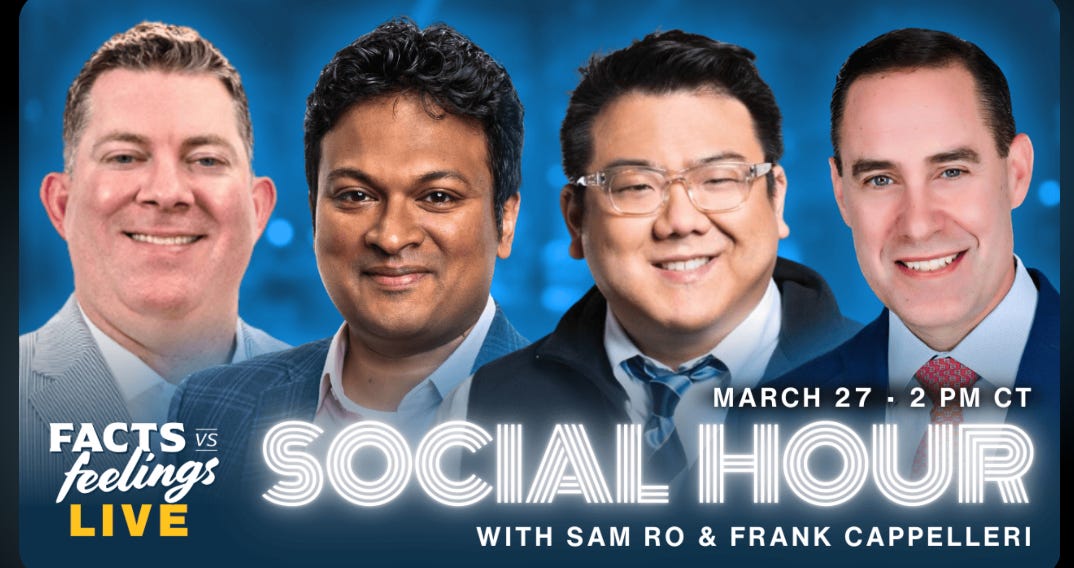 I’ll be on “Facts Vs Feelings: Social Hour” with Carson Group’s Ryan Detrick and Sonu Varghese. I’ll be joined by CappThesis’ Frank Cappelleri. The live program will air on YouTube on Friday, March 27, at 3 pm ET.