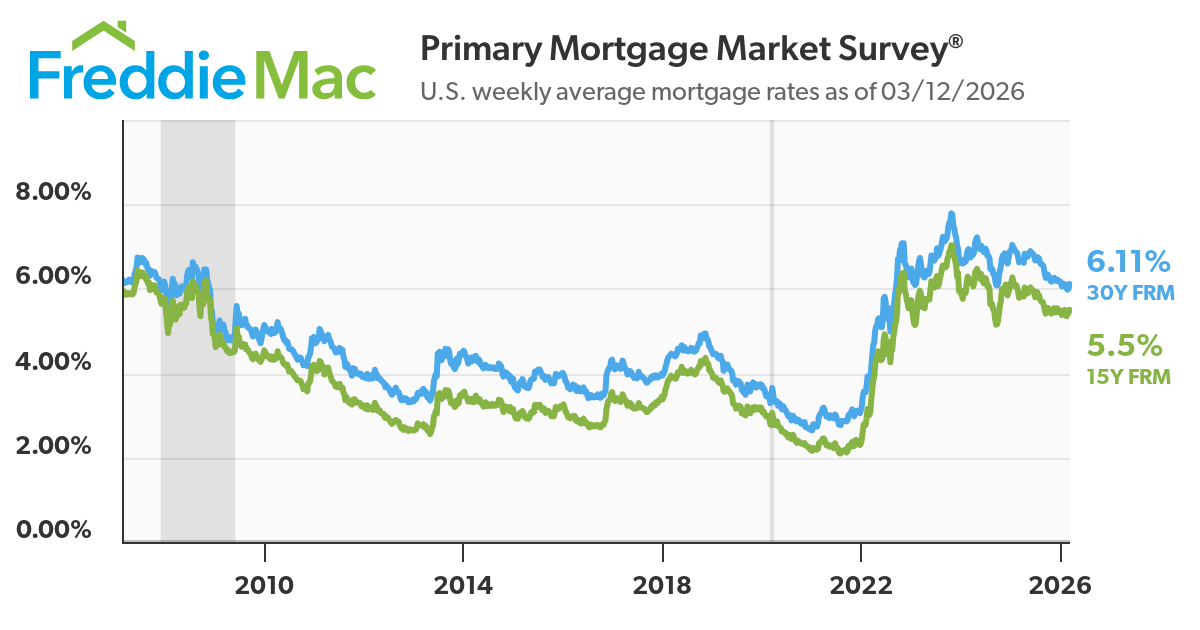 🏠 Mortgage rates rise. According to Freddie Mac, the average 30-year fixed-rate mortgage rose to 6.11%, up from 6.00% last week: “Despite the modest uptick, buyers are responding to rates in this range, with existing-home sales increasing 1.7% in February. Purchase applications also increased this week, a welcome sign as buyers enter spring homebuying season with rates down more than half a percentage point compared to the same time last year.”