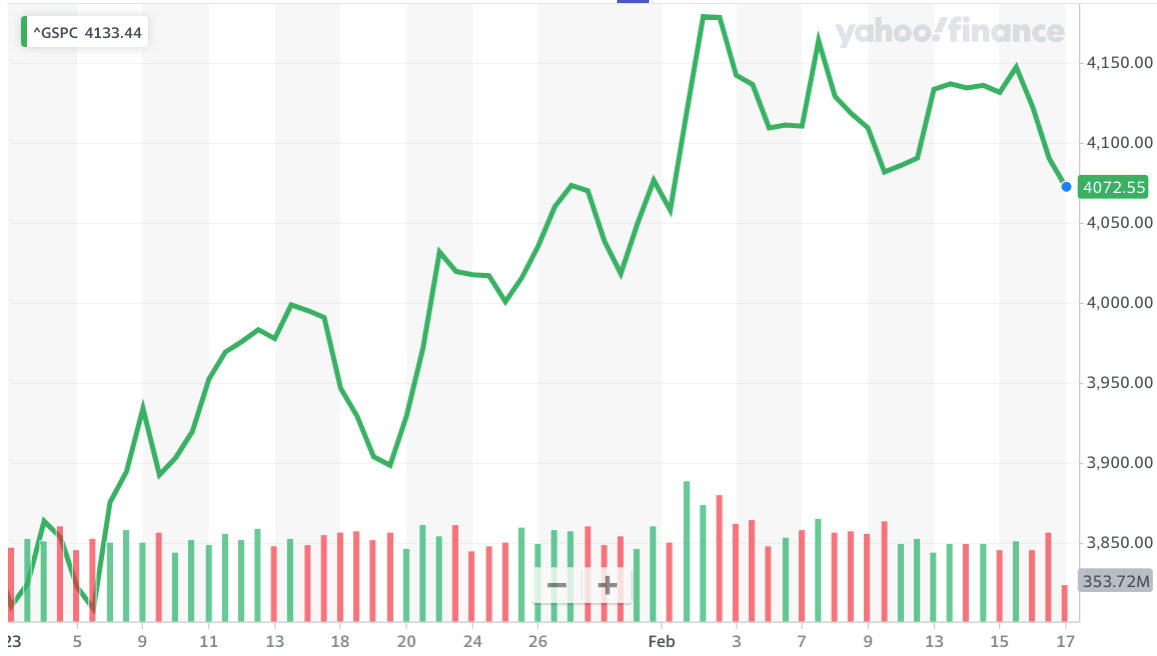 As of Friday afternoon, the S&P 500 was up 6% in 2023, and the index has spent almost all of this period higher than where it started the year. Itβs now up 14% from its October 12 closing low of 3,577.03.