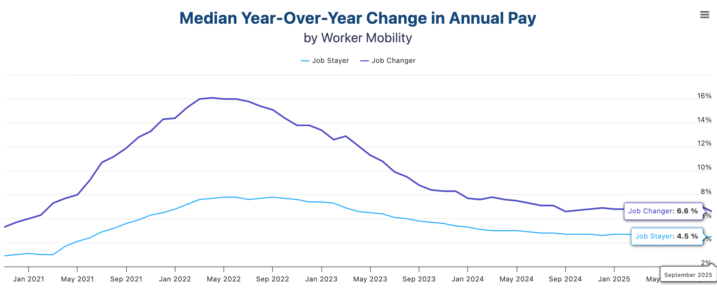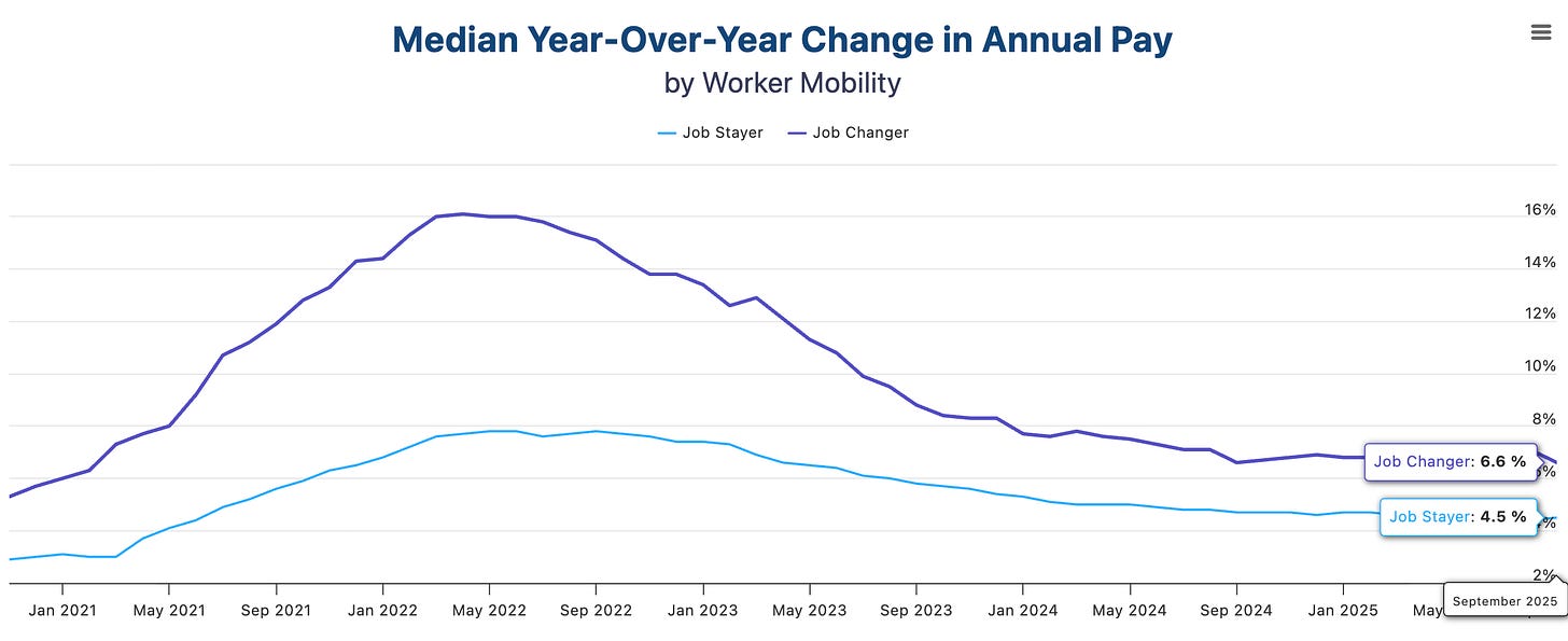 💰 Job switchers still get better pay. According to ADP, annual pay in September for people who changed jobs was up 7.6% from a year ago. For those who stayed at their job, pay was up 4.5%.