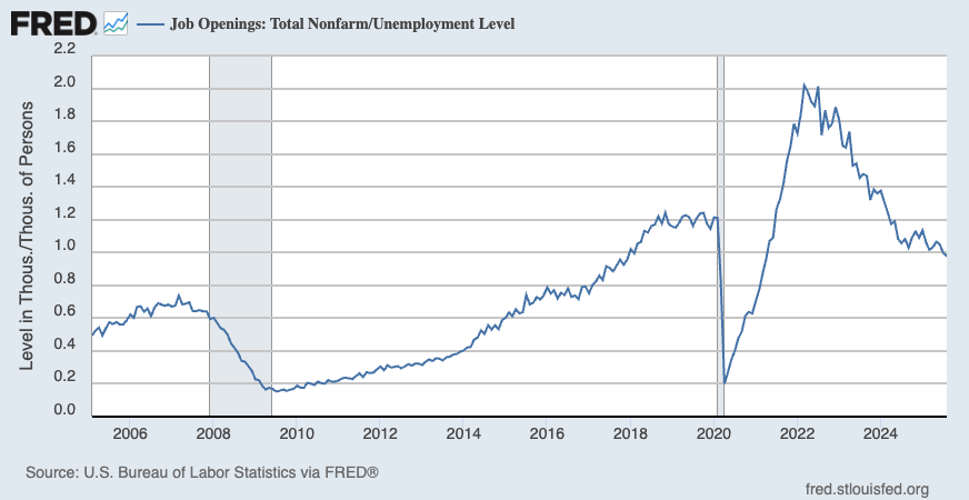 But growth is cooling: While the economy remains healthy, growth has normalized from much hotter levels earlier in the cycle. The economy is less “coiled” these days as major tailwinds like excess job openings and core capex orders have faded. It has become harder to argue that growth is destiny.