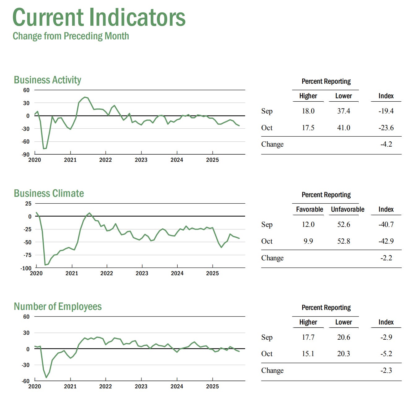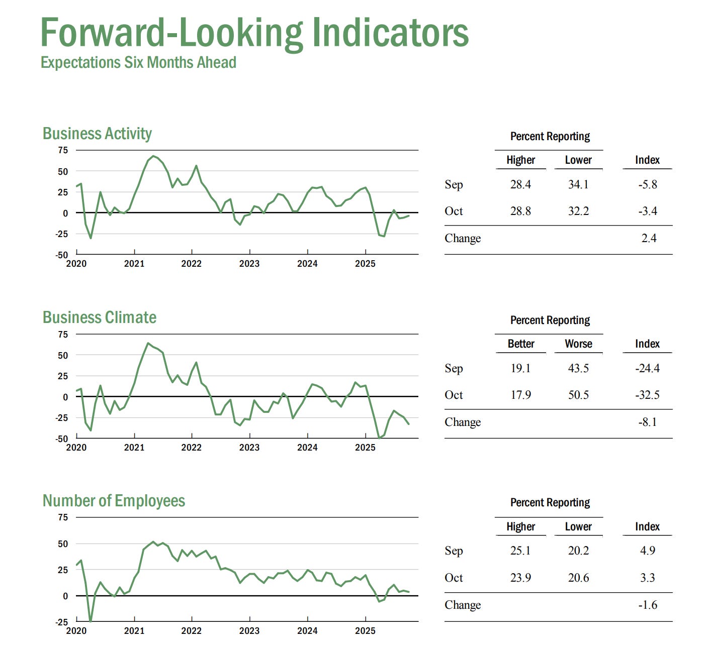 👎 Business leaders in the northeast U.S. are concerned. From the NY Fed’s October Business Leaders Survey: “Business activity declined substantially in the New York-Northern New Jersey region’s service sector in October. Employment edged lower. Firms generally do not expect conditions to improve in the months ahead.“
