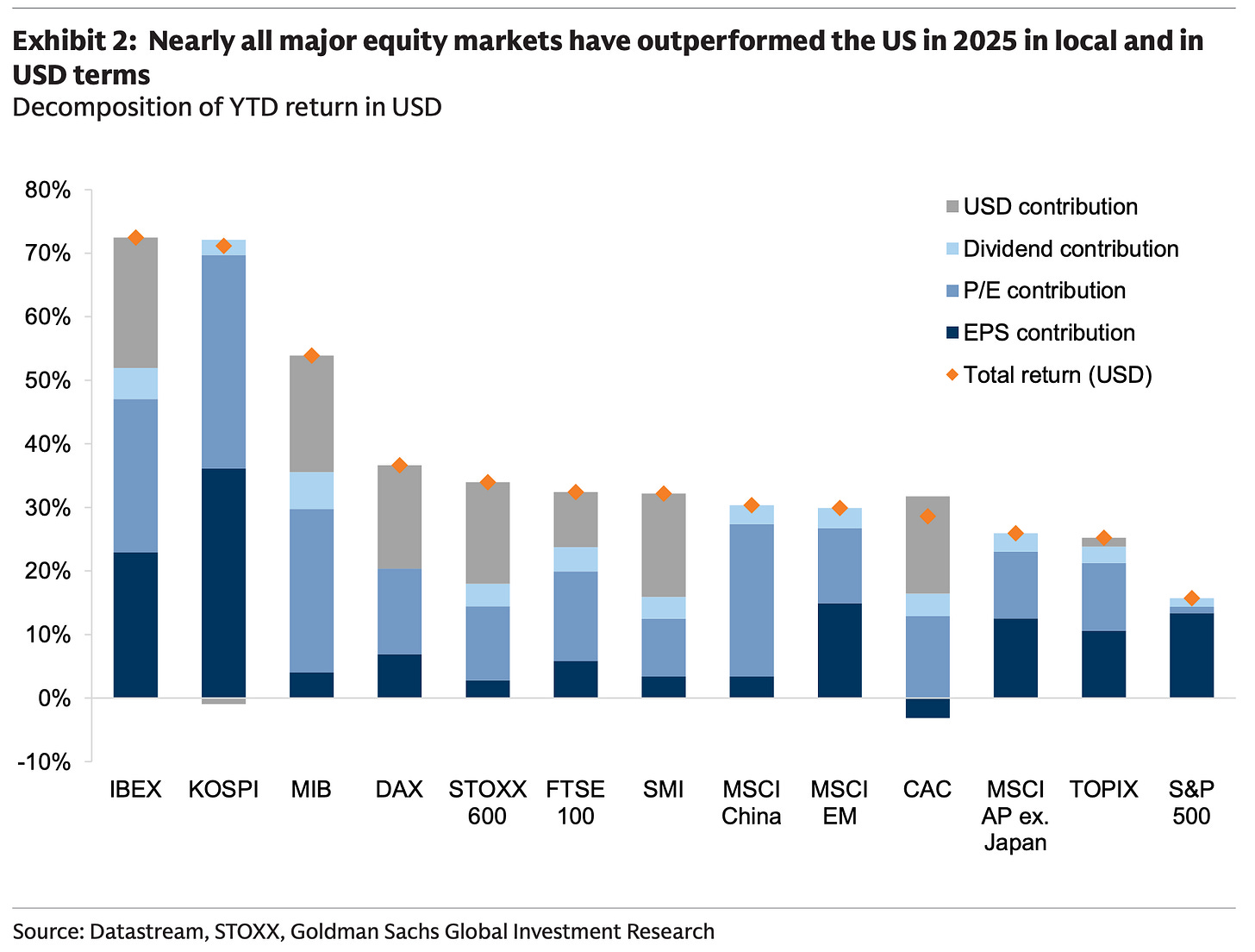 “Most major equity markets have outperformed the U.S. in 2025 as geographic diversification has, for the first time in many years, benefited investors,” Goldman Sachs’ Peter Oppenheimer wrote on Thursday.