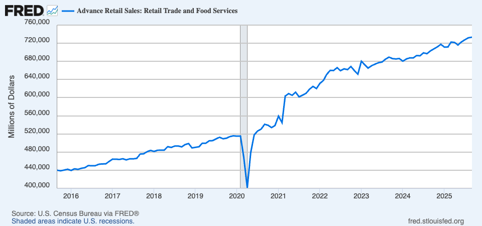 šļø Retail shopping ticked higher. Retail sales increased 0.2% in September to a record $733.3 billion.
