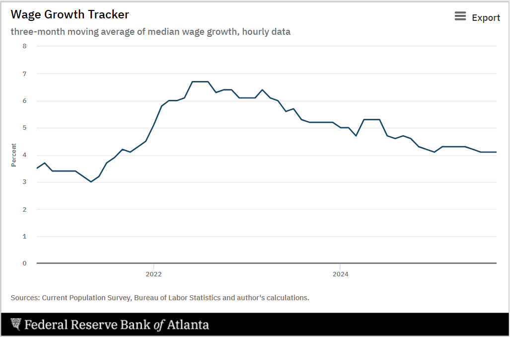š¤ Wage growth is cool. According to the Atlanta Fedās wage growth tracker, the median hourly pay in September was up 4.1% from the prior year, unchanged from the prior month.