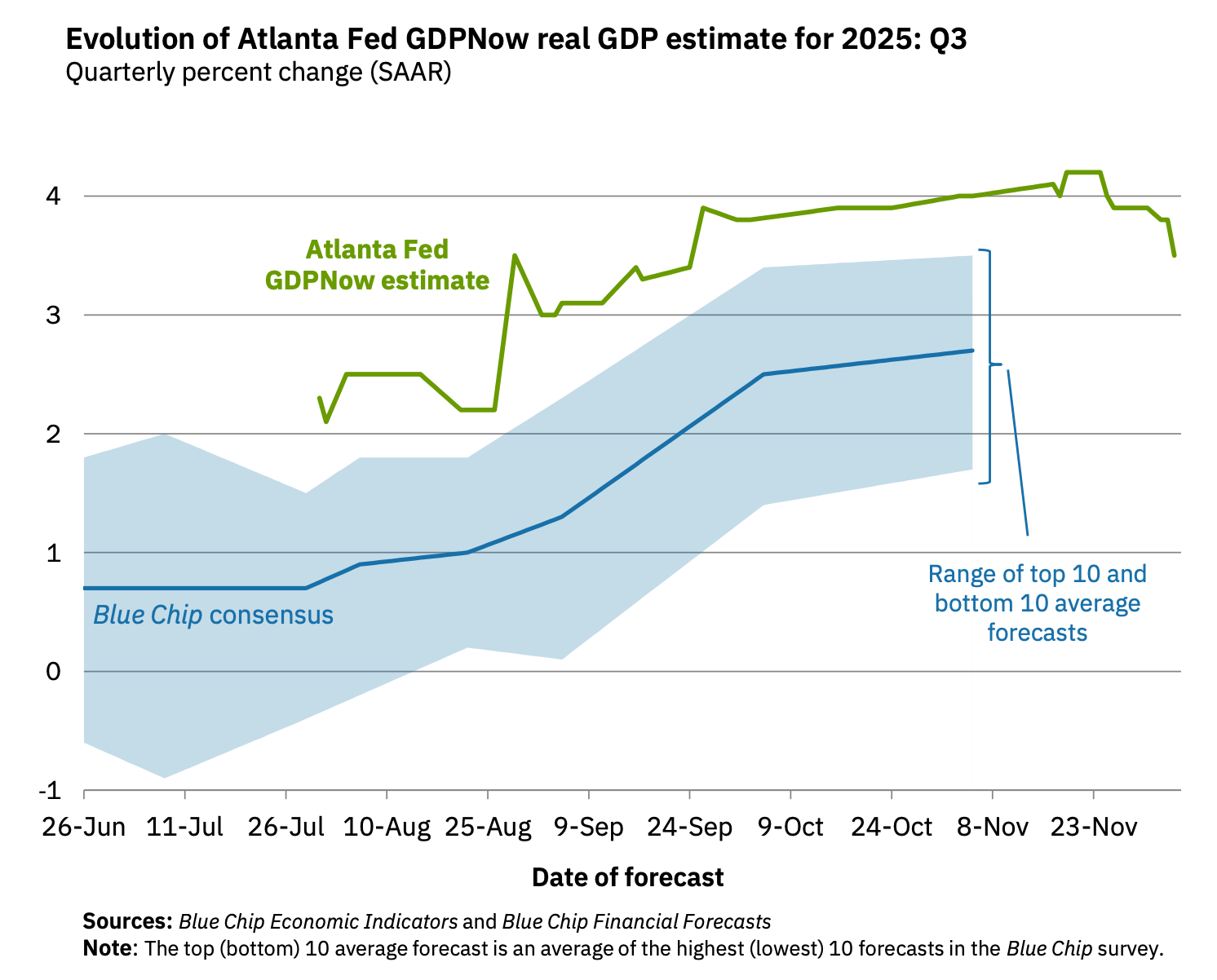 š Near-term GDP growth estimates are tracking positively. The Atlanta Fedās GDPNow model sees real GDP growth rising at a 3.5% rate in Q3.