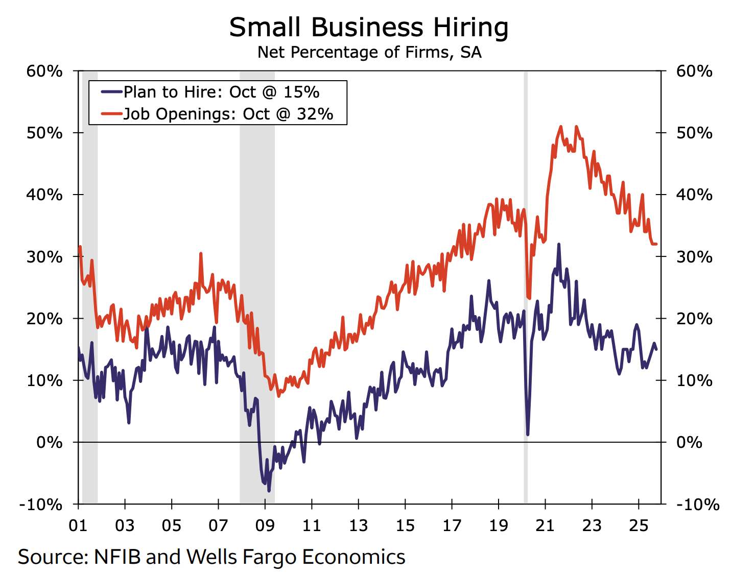 Small businesses’ plans to hire in the next three months and net unfilled job openings have been trending lower.